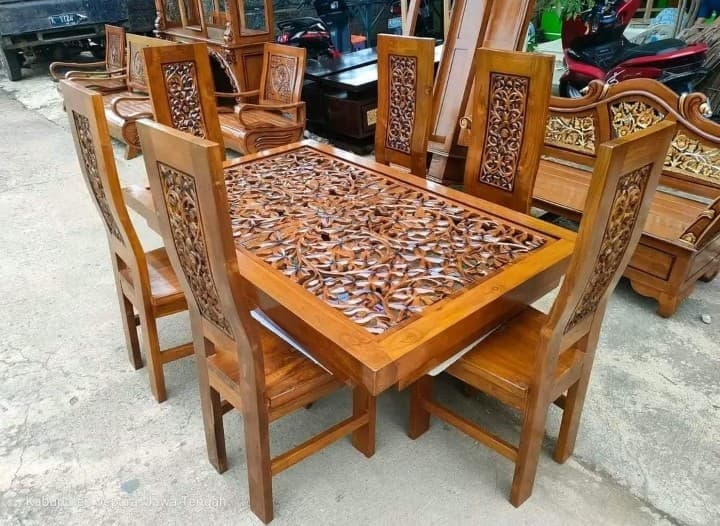 Ruang tamu adalah cerminan pertama dari kehangatan dan karakter sebuah rumah. Karena itu, memilih furnitur yang tepat menjadi hal yang sangat penting. Set Meja Kursi Tamu Kayu Jati Ukir ini hadir sebagai pilihan ideal untuk Anda yang menginginkan perpaduan antara keindahan seni ukir tradisional dan ketangguhan kayu jati yang melegenda.